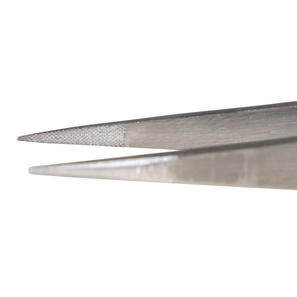 The serrated tips provide exceptional grip on even the smallest objects, ensuring accuracy in every task. The unique cross-hatch knurled grip is engineered for comfort and control, reducing hand fatigue during prolonged use