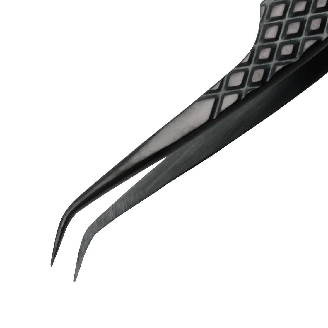 The tweezer's elegant black finish is achieved through a sophisticated Physical Vapor Deposition (PVD) process, which fuses a durable Titanium Carbide coating to the surface. This advanced technique not only enhances the aesthetic appeal but also imparts superior scratch and corrosion resistance, ensuring the tweezer's longevity and reliability.