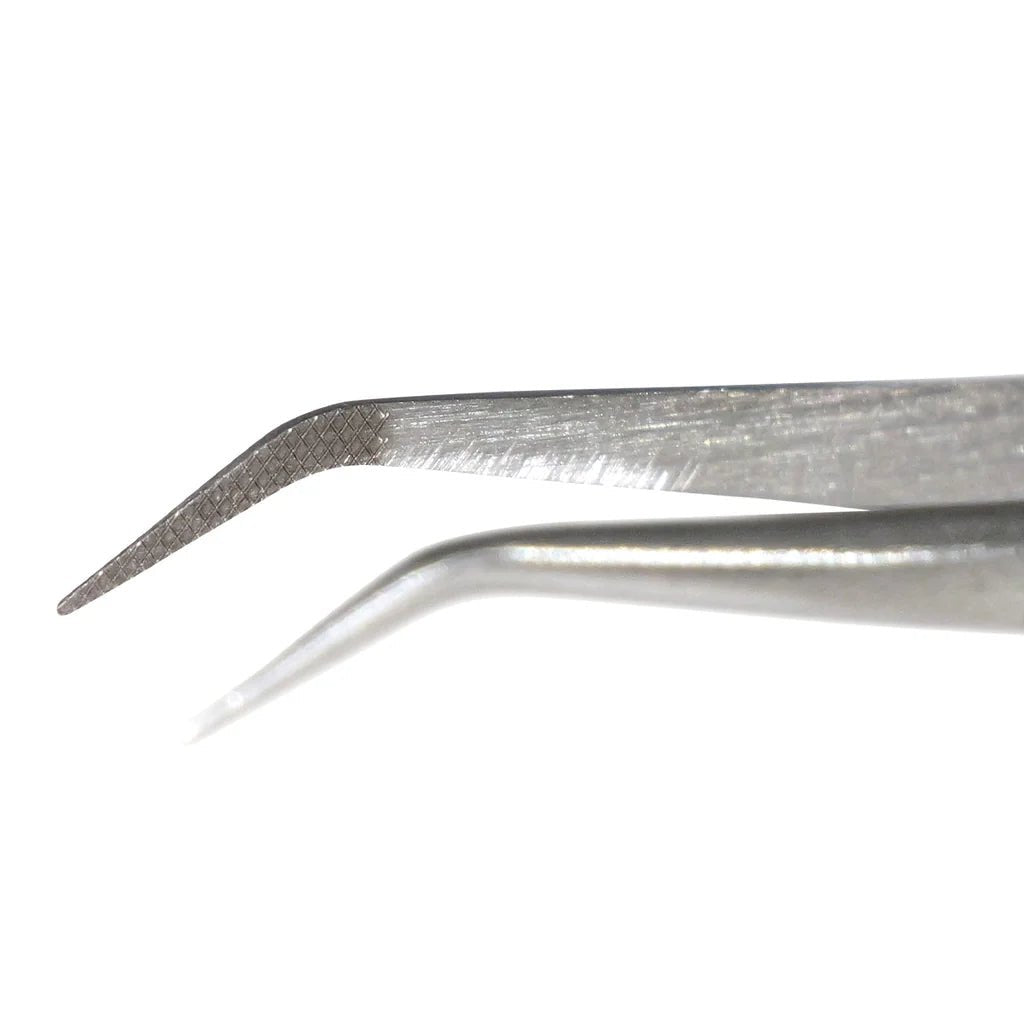 Crafted from anti-magnetic & anti-acid 304 stainless steel, these tweezers are designed to withstand the rigors of daily use while maintaining their precision. The serrated tips provide exceptional grip on even the smallest objects, ensuring accuracy in every task. The unique cross-hatch knurled grip is engineered for comfort and control.