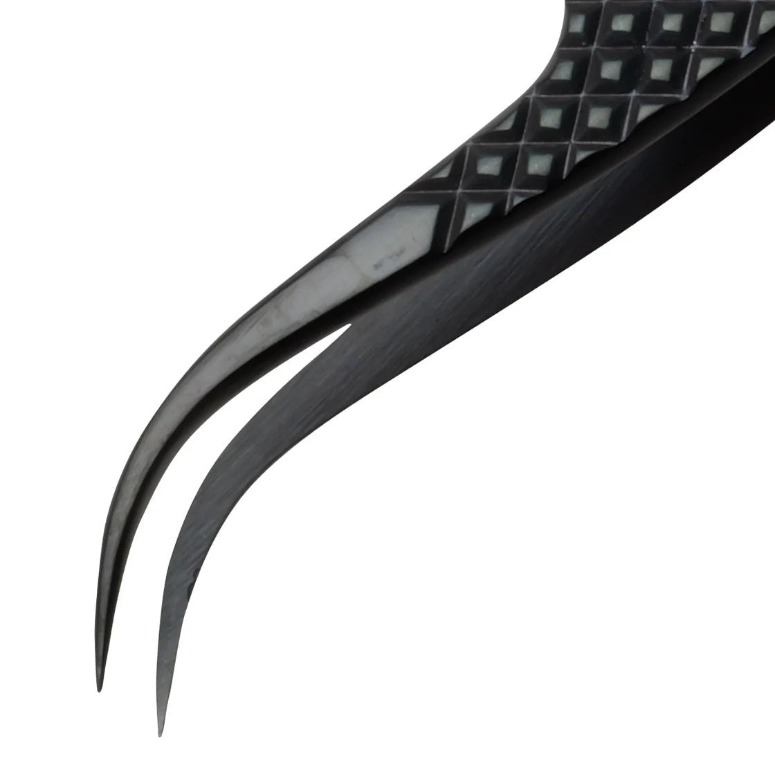 The tweezer's elegant black finish is achieved through a sophisticated Physical Vapor Deposition (PVD) process, which fuses a durable Titanium Carbide coating to the surface. This advanced technique not only enhances the aesthetic appeal but also imparts superior scratch and corrosion resistance, ensuring the tweezer's longevity and reliability.