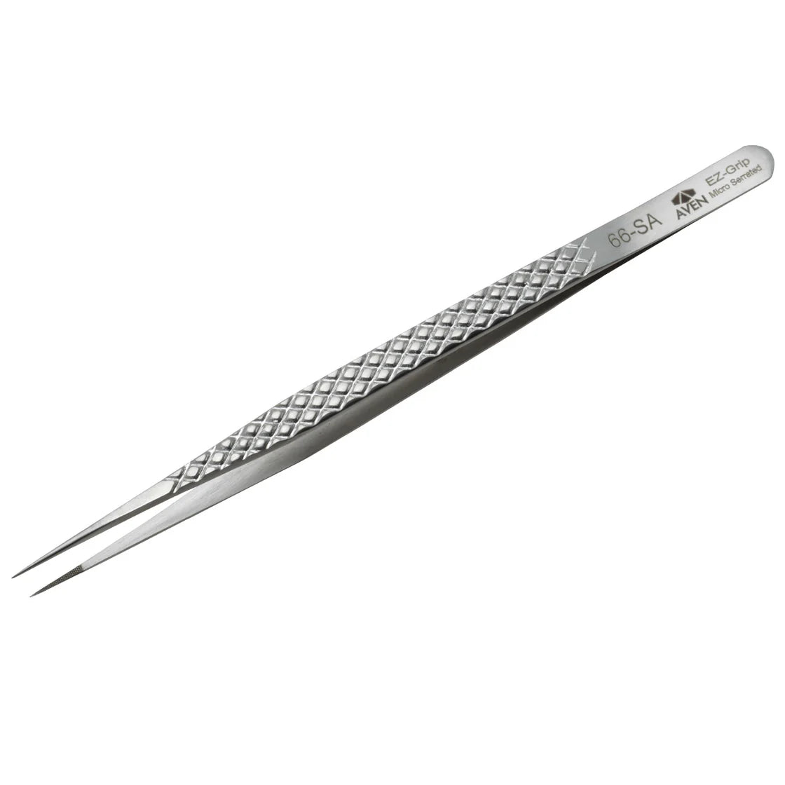 Aven Tools 18077EGS EZ Grip Micro-Serrated Tweezers Stainless Steel, #66 Pattern