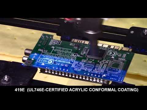 419E is a premium acrylic PCB conformal coating that is designed to enhance PCBs environmental protection. This PCB protective coating is one of the few coatings on the market that is certified to both UL 746E and IPC CC 830C. It is easy to apply, can be handled in 15 minutes, and cures to a durable, flexible, and smooth finish. It can be readily removed with appropriate strippers or soldered through for repair or rework.